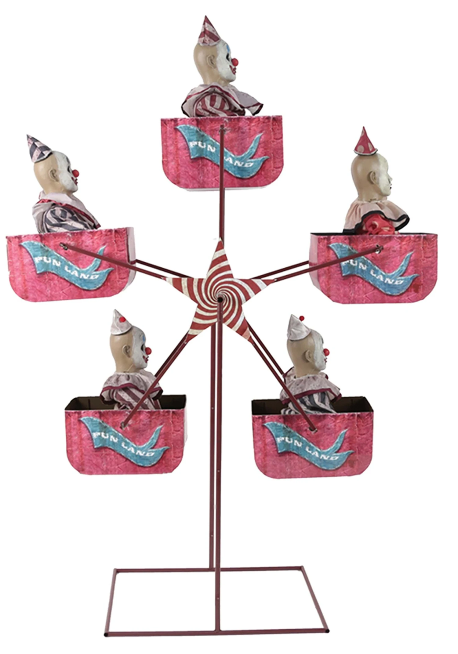 Clowns and fairs go together like chocolate and peanut butter. It’s easy and fun to pretend that ominous things are lurking behind the dazzling lights and spinning rides. You wouldn’t want to get trapped on a ride with someone, or something, that was out to get you. Oooh, we’re getting goosebumps just thinking about it! Add some creepy, retro flair to your Halloween decorations with this Animatronic Evil Clown Ferris Wheel. It’s the perfect blend of innocent and off-putting. Everything looks fine, until you get just a bit too close…!