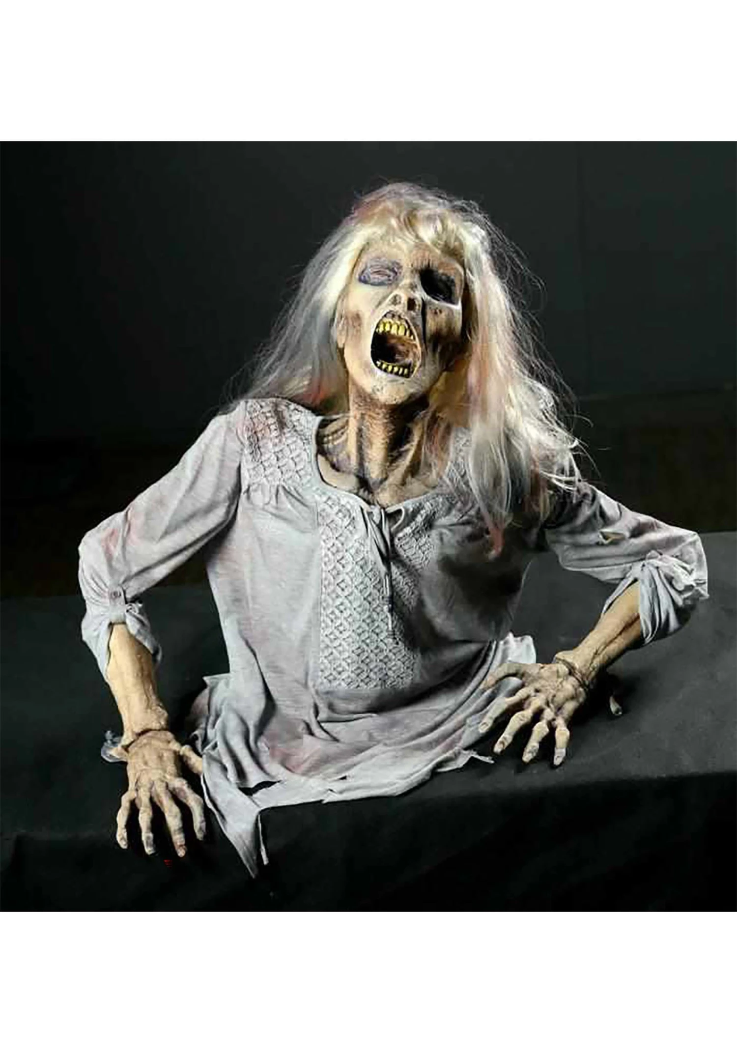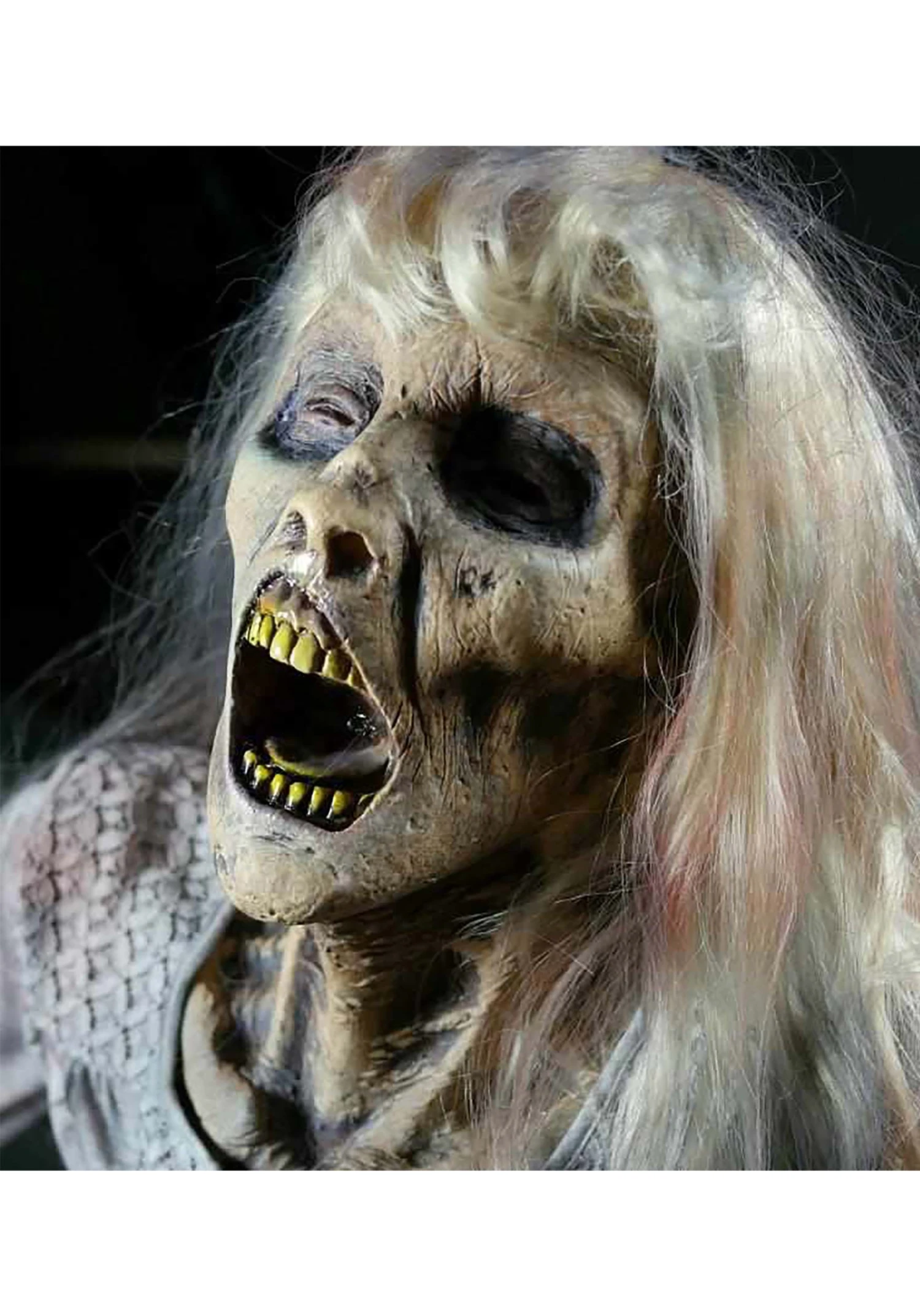 It’s not every day you see a shriveled body clawing its way out of your front yard! This Grave Buster Barb Prop looks incredibly authentic from the graying synthetic hair to the mouth open in a snarl. It’s a foam-filled latex prop that has a metal armature. The arms are also made out of foam and can be posed as desired! Place it around your home to create a frightening zombie style for Halloween!